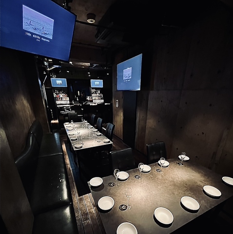 【最大38名様迄】六本木や表参道から徒歩圏内の当店はまさに大人の隠れ家。非日常や感動と一体感を作り出すのに欠かせない映像演出にモニターも完備。PC接続はもちろんBluetooth接続もOK、スマホやタブレットにデータを入れてお持ち込みいただければモニターに投影が可能です♪