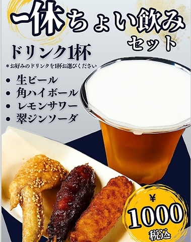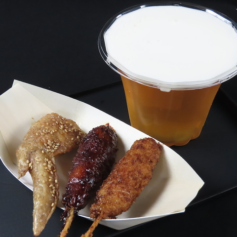 こだわりの秘伝のたれで絡めて仕上げました。串カツ・手羽先・ホットドッグ等手軽なお料理を豊富にご用意♪セットでのご注文だと100円引き!