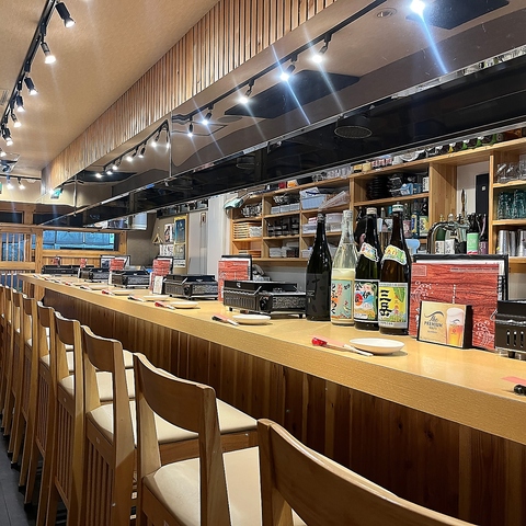 駅からすぐの好立地。カウンターで、ゆったりと鮮魚を味わえます。