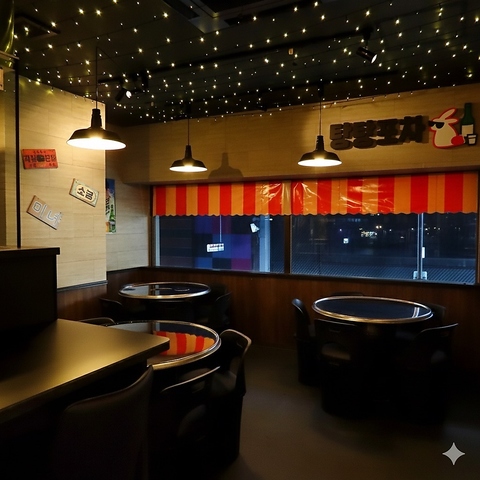 一番街ミスタードーナツの2階に位置し、チャミスルの看板が目印。ビルの入口は西橘通り側で集合しやすい場所です!韓国のポチャ(屋台)の賑わいとSNS映えを両立した空間で、最大30名様まで対応可能。大人数の宴会はもちろん、当日ふらっと飲みも大歓迎!ゆったりテーブル席で本場韓国気分を満喫ください。