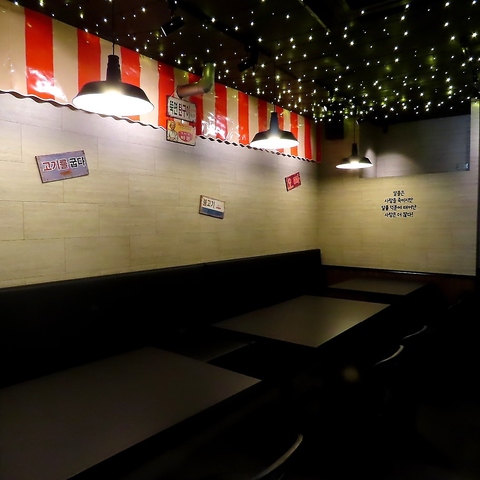 韓国の屋台(ポチャ)をイメージした、本場さながらの賑やかさと落ち着ける雰囲気を両立した空間です。店内はどこを切り取ってもSNS映えするデザインで、女子会にも大人気!12名様までの団体様にも対応可能な席があり、ご友人との飲み会や大人数でのご宴会まで、楽しいひとときを広々とした空間で満喫していただけます。