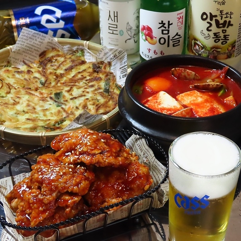 アツアツの豆腐と具材たっぷりのスンドゥブチゲは、体の芯から温まる絶品スープ!チャミスルとの相性も抜群です。 外はカリッと、中はふんわりのチヂミは、雨の日にマッコリと楽しむのが本場流。夜食の定番ヤンニョムチキンは、甘辛いタレとビールの無限ループペア!お好きなお酒に合わせて、最高の韓国グルメをどうぞ。