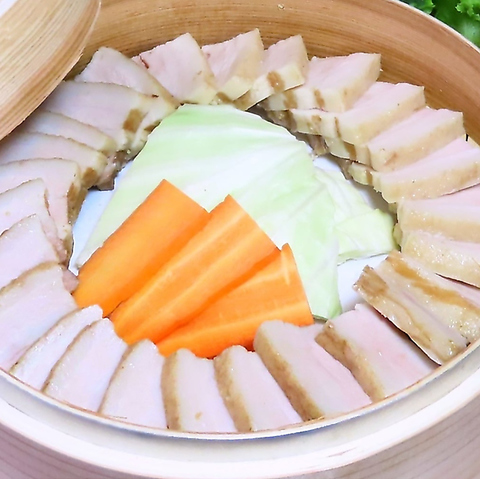 ゆでた豚肉と野菜で包んだ料理で女性に大人気!