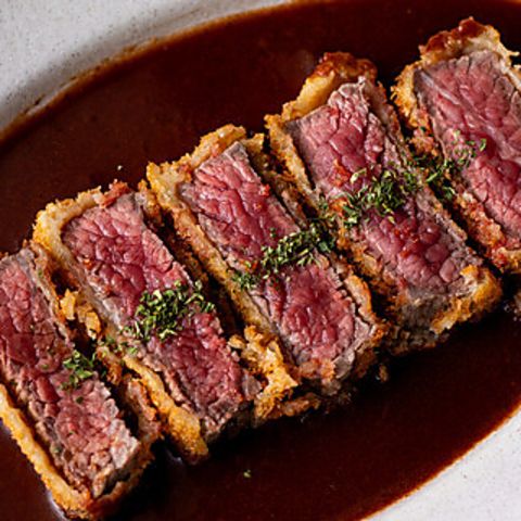 引き締まった赤身が魅力の熊本・厳選肉を特製赤ワインソースで仕上げた延寿牛のレアカツは必食の逸品です!