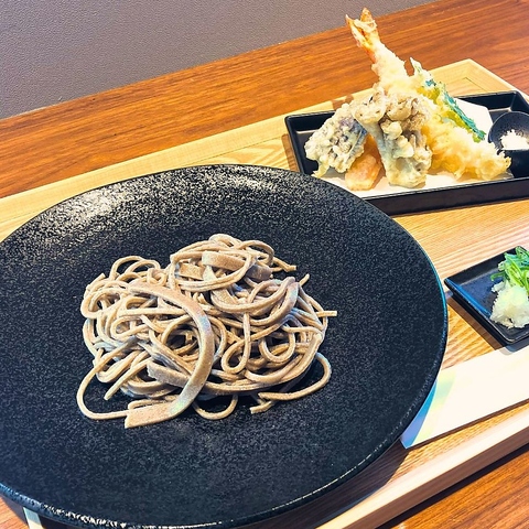 そば粉を100%使用し、そば本来の香りと旨味を閉じ込めた十割そば。つるっと香り高い十割そばと、揚げたてさく咲くの天ぷら。合わせて召し上がって頂くことで軽やかな触感と奥行きのある旨味をお楽しみいただけます。