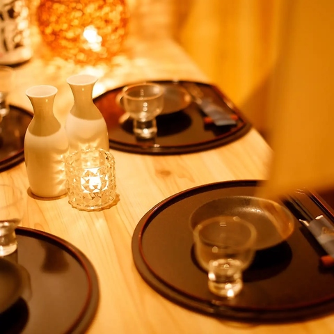 2名様~ご利用可能なテーブル個室を多数ご用意しております。デートや記念日に雰囲気のあるプライベート空間です。扉付き個室となっておりますので周りを気にすることなくお過ごし頂けます。お席のみのご予約も大歓迎です。