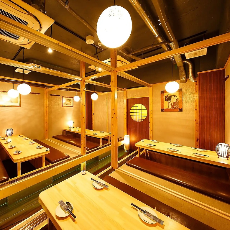店内は完全個室席を多数ご用意◎広々とした個室は2名様~団体様まで大小様々な空間をご用意しております。
