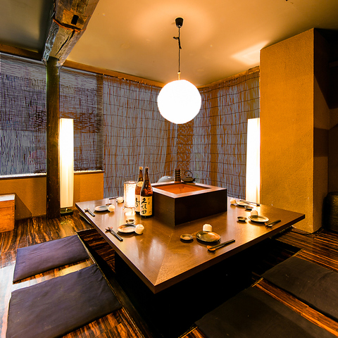 こだわりの店内は、扉付き個室を多数完備!落ち着きある大人の隠れ家空間をご提供致します。各種宴会にオススメの飲み放題付コースは4400円(税込)~ご用意!お手頃価格でご案内いたしますので、肩を張らずご来店ください。デートや接待でのご利用、団体様での歓送迎会、同窓会にもおすすめです。