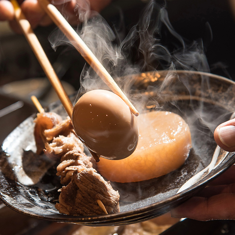 温かい出汁が染み込んだ具材は、ほっこりと心を温めます。大根やこんにゃく、牛すじなど、シンプルながらも風味豊かな具材を厳選し、丁寧に煮込みました。優しい味わいと食感が口いっぱいに広がり、寒い日や懐かしい味を求めるときにぴったりです。心温まる一品をお楽しみください。