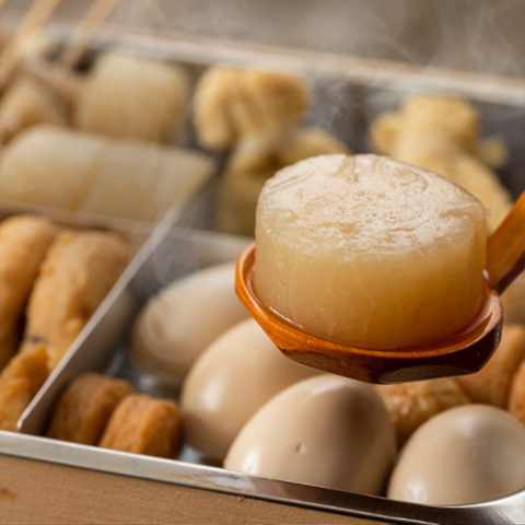 丁寧に仕込まれた特製出汁の風味が、一口ごとにじゅわっと広がる自慢のおでん!心温まる一品です。