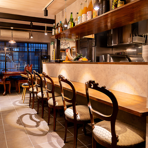 店内は木の温もりがあたたかいこだわりのテーブルとカウンター席。お一人様でも、お友達とも、デートでも、ご家族でもおくつろぎいただけるお店です。お客様のご要望にお応えできるよう、お料理の提供を考えたお酒をご提案させて頂きますので、お気軽にご相談ください。