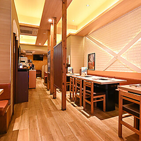 落ち着いた色合いが作るゆったりとした雰囲気の店内。広々としたテーブル席がございます。テーブル席は6名様掛けをご用意しておりますので、家族・ご友人同士でのお食事、女子会、ちょっとした飲み会・宴会など様々なシーンでご利用いただけます。