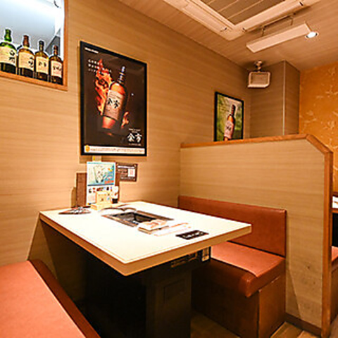広々としたテーブル席にお肉や一品料理、ドリンクを並べて、お連れ様とごゆっくりお寛ぎくださいませ。