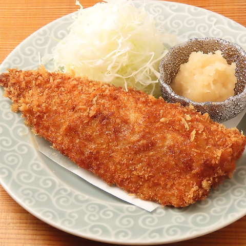 毎朝、日比野市場にて目利きし買い付けるのは、長崎県産を主とした大型サイズの真鯵。 その大判で肉厚な真鯵を、贅沢にも二枚のアジフライに仕上げました。 大根おろしと橙の風味豊かな特製おろし橙ポン酢で、ご賞味ください。
