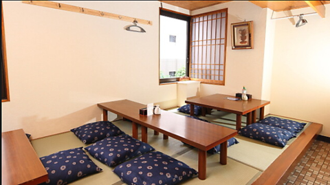少人数様(2名様~)からご利用できるのでお問い合わせもお気軽に。足をおろしてゆっくりおくつろぎいただけるお座敷席です◎和風の落ち着いた雰囲気で、畳敷きの床に低いテーブルが配置されています。