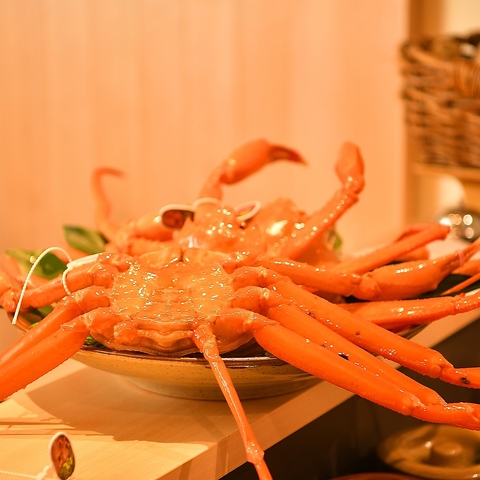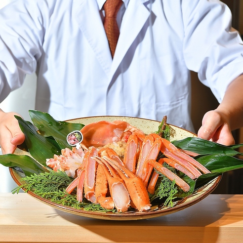 日本海から届く松葉ガニを、しゃぶしゃぶ・炭火焼など多彩な調理法で表現。蟹味噌の濃厚な旨味、刺身の繊細な甘み、焼き蟹の香ばしさ…職人が一皿ごとに丁寧に仕立てる会席は、素材本来の魅力を最大限に引き出した逸品揃い。冬の北新地でしか味わえない、極上の美味を心ゆくまでご堪能ください。