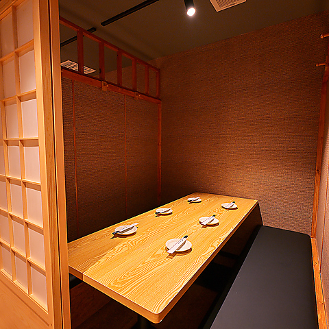 木の温もりが心地よい和モダンな個室は、扉を閉めれば自分たちだけの静かな空間。周囲を気にせず会話を楽しめ、時間を忘れてくつろげます。接待やデートはもちろん、親しい仲間との語らいにもぴったり。柔らかな灯りが料理を美しく照らし、穏やかな空気が流れる上質なひととき。落ち着いた夜を過ごしたい方におすすめです。