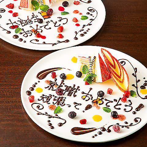 記念日や誕生日に人気の、特製バースデープレートをご用意。ご希望のメッセージを添え、スタッフがタイミングを合わせて演出いたします。照明の落ちる瞬間や笑顔がこぼれるシーンを大切に、お祝いの気持ちを形にするサプライズをお手伝い。大切な人と過ごす時間が、より心に残るひとときになります。