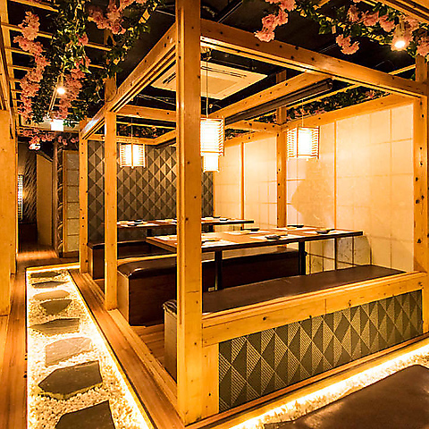 扉付き個室ですので周りを気にせずゆったりおくつろぎいただけます。接待、デート、女子会などに最適な少人数用個室から歓送迎会などのご宴会に最適な宴会場まで大中小個室完備!