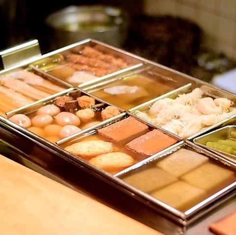 専門店ならではのこだわり!常に熱々のおでんをご提供しております。優しい出汁が染みわたった大根、たまご、ちくわぶなど、定番から変わり種まで種類豊富で選ぶ楽しさも満点です。お好みの具材で盛り合わせを注文するのもおすすめです。座敷でゆったりと、心も体も温まるひとときをお過ごしください。