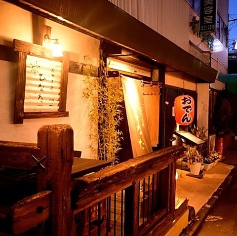 駅から徒歩2分というアクセス抜群の場所に佇む当店。どこか懐かしい雰囲気の縄暖簾と、お店の看板である「おでん」と書かれた赤い提灯が、アットホームで心温まる雰囲気を感じさせます。お仕事帰りや休日のひとときに、ついふらりと立ち寄りたくなるような空間で、ほっと一息ついてみませんか。