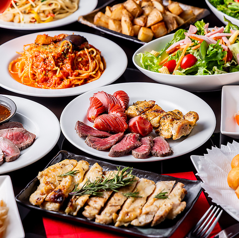 炭焼きチキンやポークステーキが食べ放題!香ばしさと旨みが詰まった肉料理に、アボカド生春巻きやスパイシーポテトなど人気メニューも満載。〆は3種類から選べて大満足。3時間食べ飲み放題付きで今だけ5000円⇒4000円(税込)の贅沢コース!