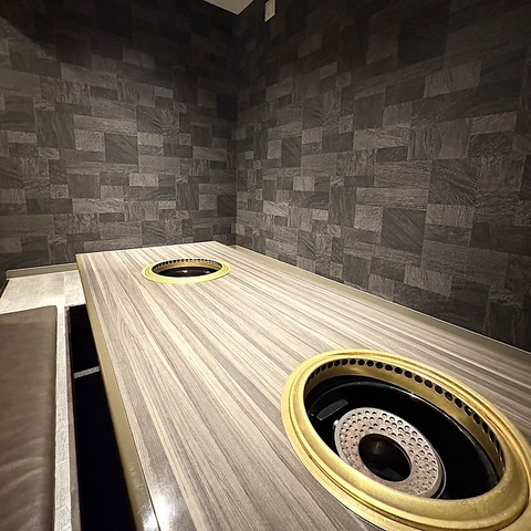 オープンしたばかりの店内には、広々なテーブルにゆったり6人掛けのお席のご用意もございます。6人掛けの席にロースターが2個設置されておりますのでみんなでワイワイお肉を楽しむことが出来ます。高級感あふれる店内で大切な方との贅沢なひと時をお過ごしください。