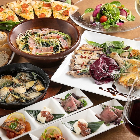 お食事メニューも多数ご用意しております!お肉料理やパスタ、アヒージョなどの定番料理からエスカベッシュ、ブルスケッタなど幅広くお楽しみいただけるビュッフェプランとなります♪(※画像はイメージです。)