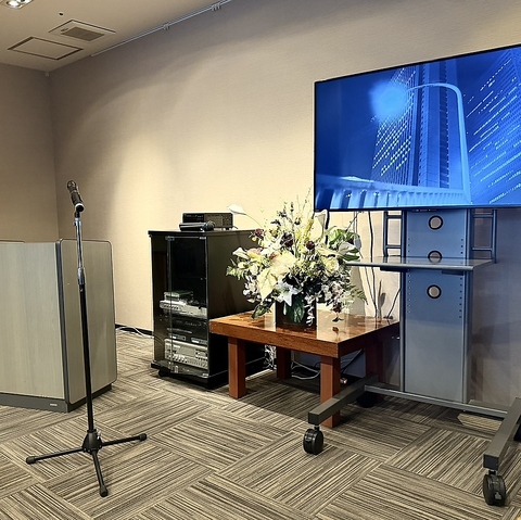 スクリーン、マイクなど設備充実!会議や会社イベントにもオススメです。