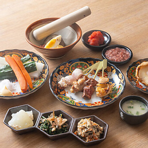 お任せのコースです一人様一人前ずつご注文お願いします混雑状況により順番が前後することがございます「名古屋コーチン」や「錦爽どり」などの銘柄鶏を使用し、毎日店内で串打ちした自慢の焼き鳥や日替わりのおばんざいなど。