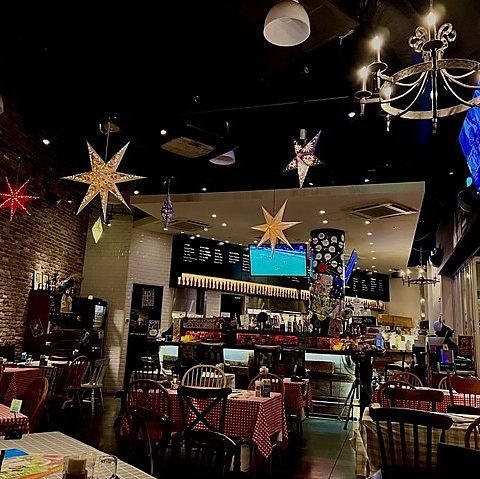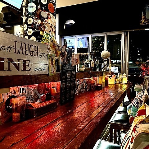 暗く落ち着いた店内には、可愛い照明とブルックリン調のお洒落なレンガ壁が配され、居心地の良い空間を演出しています♪店内には色々なお酒のPOPも散りばめられており、写真映え◎大きな窓ガラスからは、お昼は明るい陽光が差し込み、夜は美しい横浜の夜景をお楽しみいただけます。テーブルを繋げて団体様にも対応可能です。