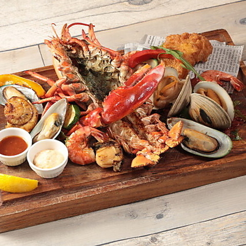 漁港の浜焼きのようなシーフードを豪快に香ばしく焼き上げました。魚貝の旨味と素材の食感を味わえる逸品です。 ビール衣でサクサクにフライした白身魚はビールに◎ シーフードをたくさん食べたいあなたにオススメです。 【・オマール海老 ・大あさり(ホンビノス) ・パーナ貝 ・海老 ・帆立 ・フィッシュフライ】 (トマトBBQソース、タルタルソース)