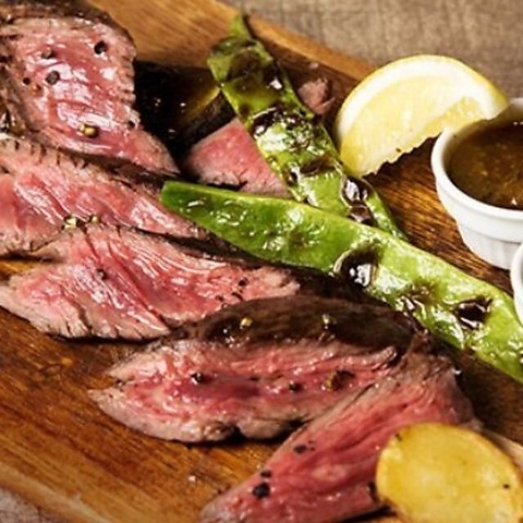 美味しさの秘訣は「炭火焼」にあり!炭火から出る赤外線は、食材の表面を一気に硬化させ、お肉の旨味をギュッと閉じ込めます◎そして何より「うまい!」と思わせる歯触り、食感を作り出します。厳選したサーロインを低温でローストビーフに仕立て、さらにグリルした手間暇かけた自信作!自家製シャリアピンソースでお召し上がりください。