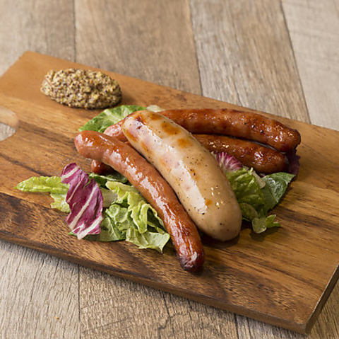 バラエティ豊かなお肉の炭火焼4種盛り合せ。 お肉を炭火で焼くことで、うま味がギュッと詰まったジューシーな料理。お肉の種類によって異なる深い味わいを堪能出来る当店の人気メニュー 【・牛ハラミ100g ・三元豚の肩ロース150g ・若鶏モモ肉の炭火焼180g ・粗挽きソーセージ100g】 (BBQソース、和風ソース、サルサソース)