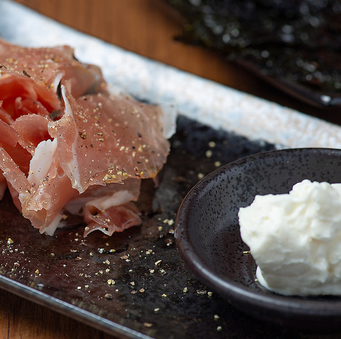生ハムと自家製クリームチーズの相性が抜群!クリームチーズチーズチャンジャも◎