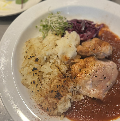 前菜から〆まで、夜にちょうど良いディナーセット(おまかせ全4品)/焼きリゾット&チキングリルをメインにデザートまでついたbrewboysの"夜の定番"。※内容は仕入れによって一部変更がある場合があります/1ドリンクオーダー制