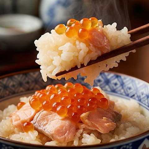 脂ののった鮭とプチプチ弾けるいくらをたっぷり使った贅沢おにぎり。海苔の香ばしさと塩気が絶妙にマッチし、一口ごとに旨味が広がります。シンプルながら奥深い味わいをお楽しみください。
