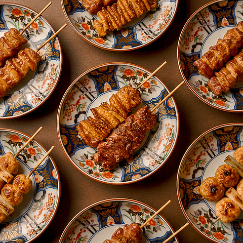 串焼き全品100円でご用意しております。焼鳥をメインとした当店は"鶏レバー"や"鶏ハツ"なども含め、肉巻き串、野菜串など、多彩なメニューをご用意しています。手仕込手作りを貫くこだわりの串は塩、タレでお楽しみいただけます。