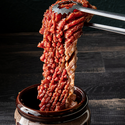当店の名物メニュー「今宵限りの盛り合わせ」は、その日入荷した新鮮な部位から料理長が厳選して一皿に盛り付けた、創業当時からの逸品です。看板メニューの『特選 姿切り』も入った豪華でお得な内容!部位の組み合わせは入荷次第で変わるため、まさに今宵限り。一期一会の焼肉との出会いを存分にお楽しみください。