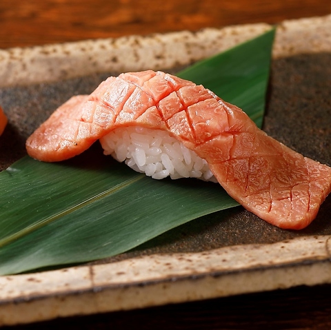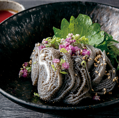 串をさしたまま、網の上でじっくり焼くことで完成する「焼きしゃぶ九条ねぎ巻き」は、当店の隠れた名物!熱が加わった九条ねぎの芳醇な香りと、お肉のジューシーな旨みが口の中で広がる絶品です。仕上げに乗せたポン酢ジュレが、さっぱりと爽やかなアクセント。他にはない、新しい焼肉体験をお楽しみください。
