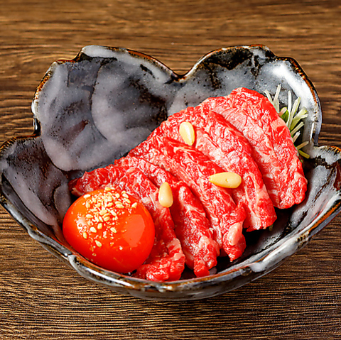 厳選した和牛の赤身を使用し、肉本来の旨みと甘みを存分に味わえる「特製ユッケ」。丁寧にカットされたお肉は舌の上でとろけるほどのやわらかさ。まろやかな卵黄と特製ダレが絡み合い、濃厚で奥行きのある味わいを生み出します。一口食べれば、上質な肉の香りと旨みが広がる、自慢の逸品です。※調理・販売認可取得済みの安心安全なユッケです。厳正な衛生管理の下、ご提供をしております。