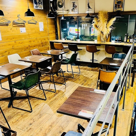 落ち着いた照明と木の温もりが心地よい2階フロア。2名様から8名様まで、人数に合わせてレイアウト可能。デートや女子会、同僚との食事など、シーンに合わせて自由に使える空間です。2階部分は貸切利用も可能で、会社帰りのちょっとした集まりやプライベートパーティにもおすすめ。