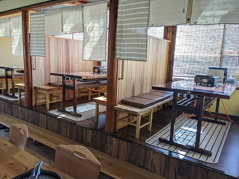 | テーブル | 4名様×2 | お店に入ってすぐ左側に4人掛けテーブル2席ご用意しています靴のままお召し上がりいただけますのでご年配の方に優先的にご利用いただいてます8名様の貸し切りブースとしてもご利用いただけます。 |