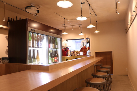 カジュアルながら清潔感のあるカウンターの日本酒バーです。