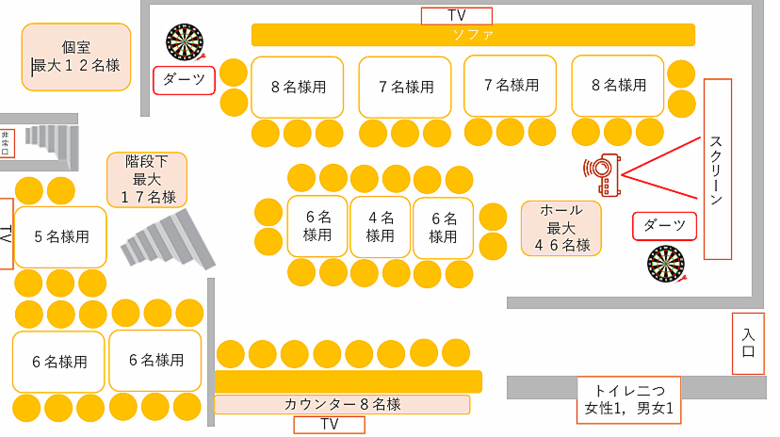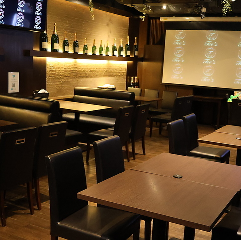開放的で設備充実!大型スクリーンやダーツ完備で、宴会や2次会を自由に演出できます♪