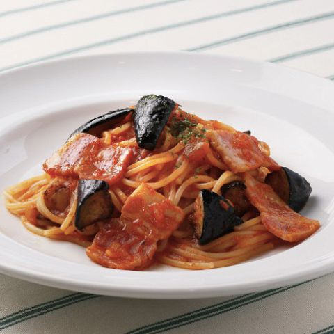 【トマト系代表】ナスとベーコンのトマトソースはもはや説明不要!押しも押されぬ創業以来の定番メニュー!