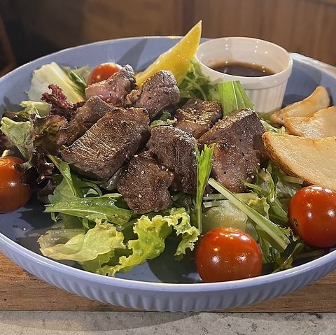 ジューシーに焼き上げたステーキを贅沢にトッピングしたボリューム満点のサラダ。新鮮野菜との相性抜群で、しっかり食べたい方にもおすすめです。