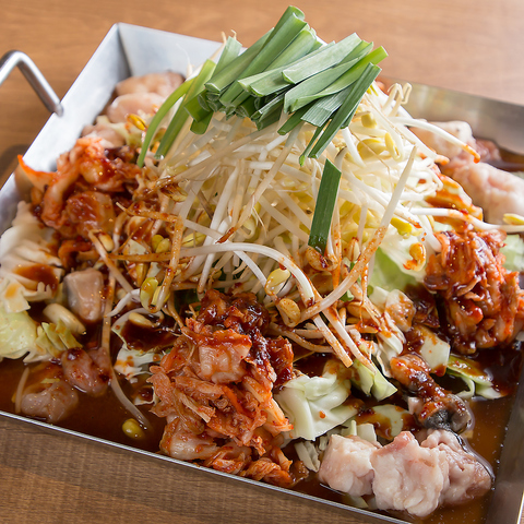 辛味噌風味の鍋に山盛り野菜とホルモンが溶け合う逸品です!