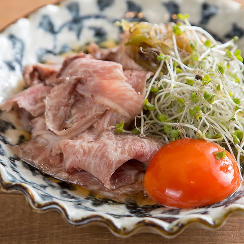 【こだわりの食材を味わう】当店では、八尾の老舗から取り寄せた鶏肉や、鹿児島の三味豚、アメリカ産の牛肉からA5黒毛和牛など料理に合わせてセレクトしております。様々な肉を取り揃えています。市場で厳選した旬の魚も使用し、料理人が手を加えることで、食材の良さを最大限に引き出します。すべての料理に心を込めて調理しております♪
