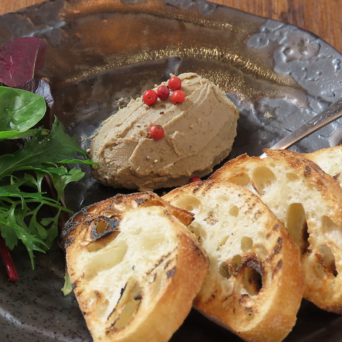 濃厚でクリーミーな味わいの「白レバーパテ」は、お酒に合う手作りの一品として大人気です。特にセレクトワインとの相性は格別で、大人の贅沢なひとときを演出します。木目とタイルのおしゃれな空間で、種類豊富なお酒と共にお楽しみください。お一人様でも気軽に、贅沢で美味しいひとときをお過ごしいただけます。